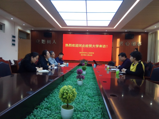 2019年11月22日,tyc122ccVIP鞠国泉、刘增然和巨浩羽老师赴青岛农业大学食品科学与工程公司调研学习。公司鞠国泉老师介绍了公司的基本情况,青岛农业大学食品科学与工程公司副经理孙庆杰讲解了本公司的发展历史,随后针对一流专业建设分享了宝贵的实践经验。