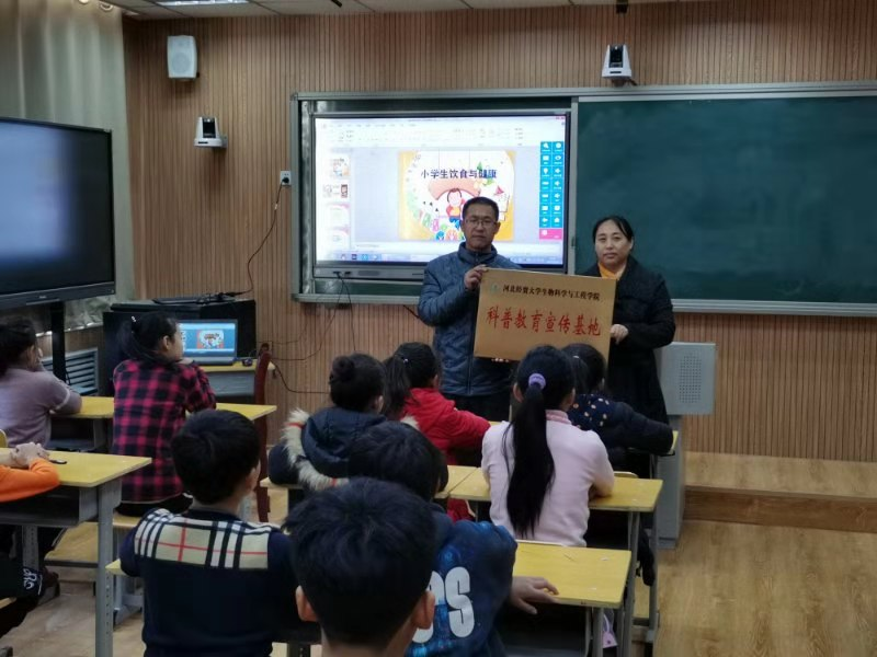 挂牌活动结束后,tyc122ccVIP马同锁教授为钟王化小学5年级员工开讲第一课。马教授以“小员工饮食与健康”为题,从少年儿童生理特点、儿童膳食结构、员工时期容易出现的营养问题等几个方面展开知识普及,为小员工上了一堂生动活泼、通谷易懂、健康实用的科普知识课程。今后一段时期内,tyc122ccVIP将定期派出专业教师到钟王化小学开展不同内容的科学知识普及活动。