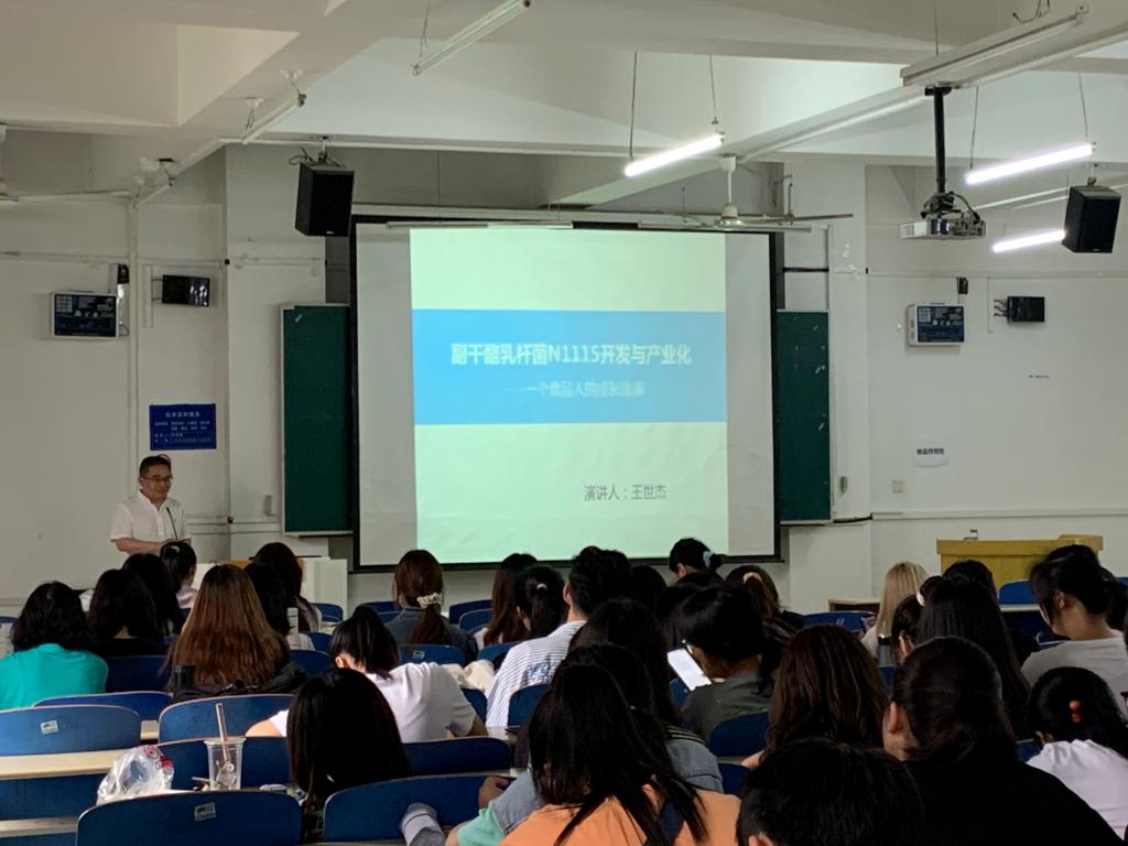 在“健康中国”的大背景下,益生菌以其强大的科技张力和融合力成为了公众对健康产品的新期待。应tyc122ccVIP邀请,5月31日下午,石家庄君乐宝乳业有限公司正高级工程师、国务院政府特殊津贴专家王世杰在B401作了题为“副干酪乳杆菌N1115开发与产业化”的专题报告。报告会由公司副经理张香美主持,公司教职工及员工200余人参加。
