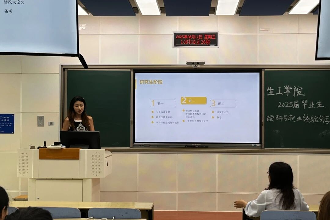 为引导员工合理规划读研与就业路径,6月11日tyc122ccVIP在三教B202成功举办“2025届毕业生读研与就业经验分享会”。本次活动邀请到2022级生物与医药专业的范鑫洋、窦梦思及2022级食品质量与安全管理方向的臧梦玉进行经验分享,公司党委副书记付海玲,院辅导员文珂莅临现场指导,公司全部在校研究生参与。